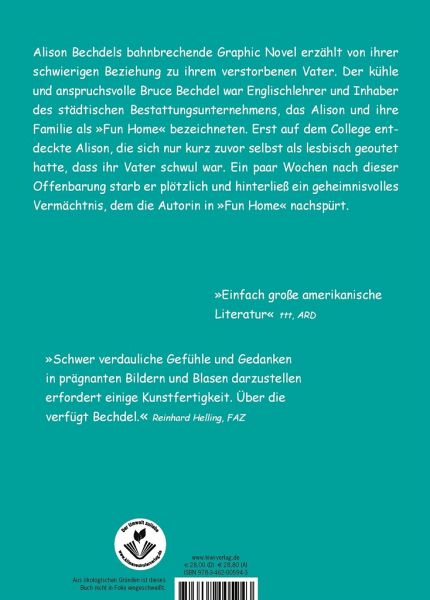 In Kapiteln, die nach Klassikern der Weltliteratur benannt sind, umkreist Alison Bechdel die Zeit vor und nach dem Tod des Vaters. Dabei zieht sie alle Register: Sie bedient sich bei der griechischen Mythologie ebenso wie bei der Existenzphilosophie, bei Oscar Wilde, Marcel Proust und im Trivialmythenschatz der amerikanischen Kultur. Heraus kommt ein irrwitzig komisches, melancholisches und kluges Buch einer Tochter, die dem Vater in Wort und Bild die Liebe nachträgt.