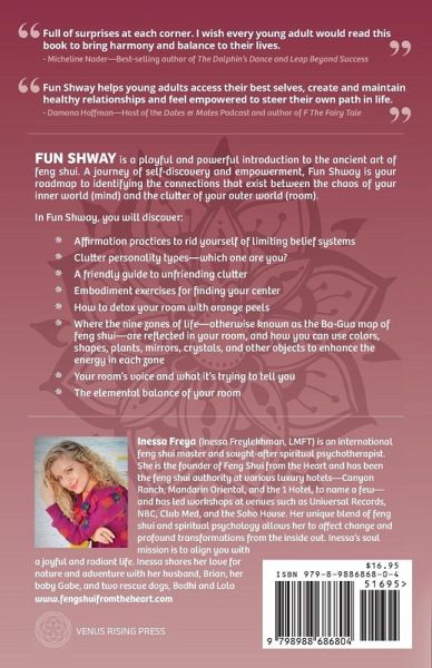 Embark on a divine journey within the captivating pages of "FUN SHWAY," a playful and powerful introduction to the ancient art of feng shui. This transformative guide is not merely a book; it's a key to unlock the extraordinary potential within you. Immerse yourself in a world where insightful exercises redefine your perception of every room, making it a place of profound self-discovery. "FUN SHWAY" invites you to a deeper exploration of your surroundings, inspiring a closer look at every nook and cranny. Through this process, you'll not only learn about your room but also about yourself. Connect to your authenticity and align with the natural forces surrounding you, ushering in a harmonious dance with the universe. This journey of self-discovery and empowerment unfolds through a rich tapestry of insights: - Affirmation practices to dissolve limiting beliefs - Unveiling clutter personality types, identifying your unique one - A friendly guide to bid farewell to clutter - Embodiment exercises leading you to find your center - Discover the transformative power of detoxing your room with orange peels - Explore the nine zones of life, the Ba-Gua map of Feng Shui, within your room, using colors, shapes, plants, mirrors, crystals, and objects to enhance energy - Uncover your room's voice, deciphering the messages it holds - Attain elemental balance within your space - Meet the playful power of minimalism, turning cluttered chaos into a canvas of whimsical harmony While crafted with young adults in mind, "FUN SHWAY" extends its wisdom to all, proving that the enchantment within its pages can benefit anyone seeking a path toward self-discovery and transformation. "FUN SHWAY" is your compass aligning you with your true self and the destiny that awaits. It's not just a holistic guide to wellness book or the perfect heartfelt gem among holistic gifts for women; it's an invitation to step into a reality where every room is a canvas for growth, joy, and purpose.