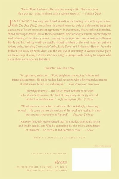 Author of How Fiction Works James Wood has long established himself as the leading critic of his generation. With The Fun Stuff, he confirms his preeminence not only as a discerning judge, but also as one of fiction's most ardent appreciators. In these twenty-three sparkling dispatches, Wood offers a panoramic look at the modern novel. He effortlessly connects his encyclopedic understanding of the literary canon-casting his eye upon such crucial writers as Thomas Hardy and Leo Tolstoy-with an equally in-depth analysis of the most important authors writing today, including Cormac McCarthy, Lydia Davis, and Aleksandar Hemon. From the brilliant title essay on Keith Moon and the lost joys of drumming to Wood's incisive piece on the writings of George Orwell, The Fun Stuff is indispensable reading for anyone who cares about contemporary literature.