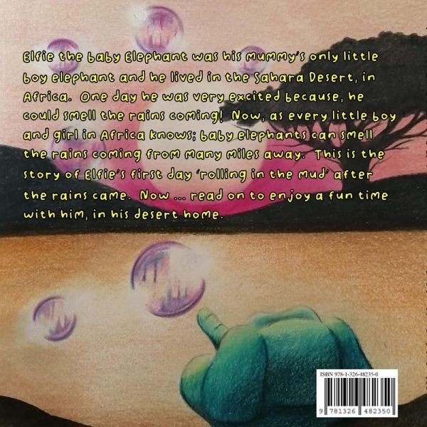 Elfie the baby Elephant was his mummy's only little boy elephant and he lived in the Sahara Desert, in Africa. One day he was very excited, because, he could smell the rains coming! Now, as every little boy and girl in Africa knows; baby elephants can smell the rains coming from many miles away. This is the story of Elfie's first day 'rolling in the mud' after the rains came. Read on to enjoy a fun time with him, in his desert home.