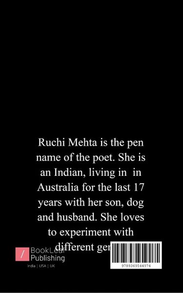 Ruchi Mehta is the pen name of the poet. She was born in India and has been living in Australia for the last 17 years. She loves to experiment with different genres