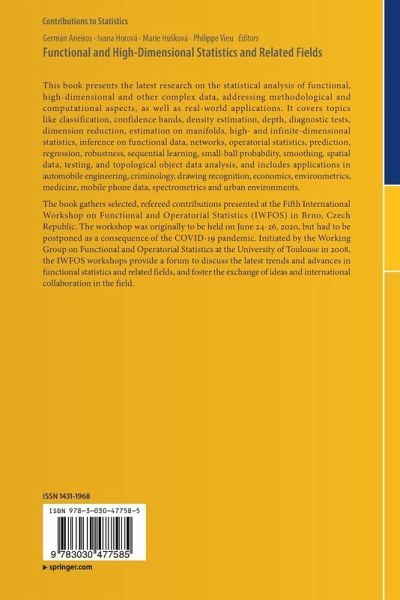 This book presents the latest research on the statistical analysis of functional, high-dimensional and other complex data, addressing methodological and computational aspects, as well as real-world applications. It covers topics like classification, confidence bands, density estimation, depth, diagnostic tests, dimension reduction, estimation on manifolds, high- and infinite-dimensional statistics, inference on functional data, networks, operatorial statistics, prediction, regression, robustness, sequential learning, small-ball probability, smoothing, spatial data, testing, and topological object data analysis, and includes applications in automobile engineering, criminology, drawing recognition, economics, environmetrics, medicine, mobile phone data, spectrometrics and urban environments.
