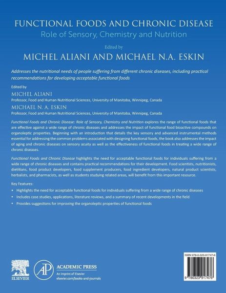 Functional Foods and Chronic Disease: Role of Sensory, Chemistry and Nutrition explores the range of functional foods that are effective against a wide range of chronic diseases and addresses the impact of functional food bioactive compounds on organoleptic properties. Beginning with an introduction that details the key sensory and advanced instrumental methods essential for addressing the common problems associated with designing functional foods, the book also addresses the impact of aging and chronic diseases on sensory acuity as well as the effectiveness of functional foods in treating a wide range of chronic diseases. Sections highlight the need for acceptable functional foods for individuals suffering from a wide range of chronic diseases and contain practical recommendations for their development. Food scientists, nutritionists, dietitians, food product developers, food supplement producers, food ingredient developers, natural product scientists, herbalists, and pharmacists, as well as students studying related areas, will benefit from this important resource.