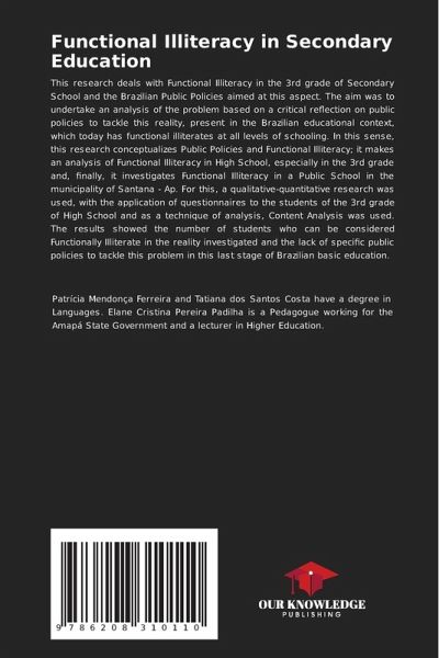 This research deals with Functional Illiteracy in the 3rd grade of Secondary School and the Brazilian Public Policies aimed at this aspect. The aim was to undertake an analysis of the problem based on a critical reflection on public policies to tackle this reality, present in the Brazilian educational context, which today has functional illiterates at all levels of schooling. In this sense, this research conceptualizes Public Policies and Functional Illiteracy; it makes an analysis of Functional Illiteracy in High School, especially in the 3rd grade and, finally, it investigates Functional Illiteracy in a Public School in the municipality of Santana - Ap. For this, a qualitative-quantitative research was used, with the application of questionnaires to the students of the 3rd grade of High School and as a technique of analysis, Content Analysis was used. The results showed the number of students who can be considered Functionally Illiterate in the reality investigated and the lackof specific public policies to tackle this problem in this last stage of Brazilian basic education.