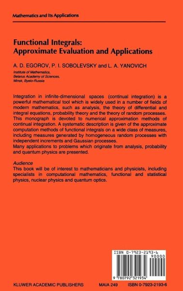Integration in infinitely dimensional spaces (continual integration) is a powerful mathematical tool which is widely used in a number of fields of modern mathematics, such as analysis, the theory of differential and integral equations, probability theory and the theory of random processes. This monograph is devoted to numerical approximation methods of continual integration. A systematic description is given of the approximate computation methods of functional integrals on a wide class of measures, including measures generated by homogeneous random processes with independent increments and…mehr