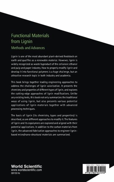 Lignin is one of the most abundant plant-derived feedstock on earth and qualifies as a renewable material. However, lignin is widely recognized as waste byproduct of the cellulosic ethanol and pulp and paper industry. How to properly modify lignin and develop it into functional polymers is a huge challenge, but an attractive research topic in both industry and academia. This book brings together leading engineering approaches to address the challenges of lignin valorization. It presents the chemistry and properties of different types of lignin, and explores the cutting-edge approaches of lignin modifications. Unlike any existing texts, this book not only summarizes the traditional ways of using lignin, but also presents various potential applications of lignin materials together with advanced processing techniques. The basis of lignin (its chemistry, types and properties) is described, as are different approaches to modify it. The features of lignin and its copolymers are explored and aligned with their potential applications. In addition to the carbon materials from lignin, the advanced fabrication approaches to engineer lignin-based micro/nano-structural materials are summarized.