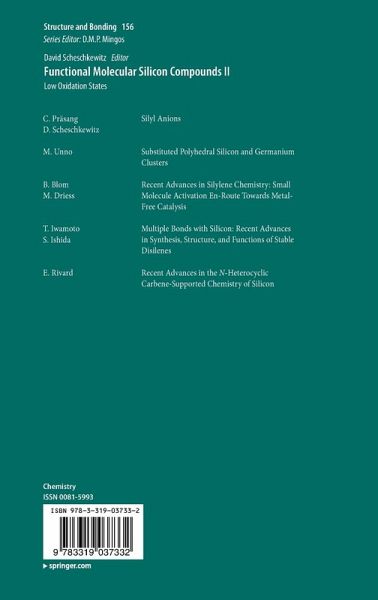 The individual volumes in the series are thematic. The goal of each volume is to give the reader, whether at a university or in industry, a comprehensive overview of an area where new insights are emerging that are of interest to a larger scientific audience. Thus each review within the volume critically surveys one aspect of that topic and places it within the context of the volume as a whole. The most significant developments of the last 5 to 10 years should be presented using selected examples to illustrate the principles discussed. A description of the physical basis of the experimental techniques that have been used to provide the primary data may also be appropriate, if it has not been covered in detail elsewhere. The coverage need not be exhaustive in data, but should rather be conceptual, concentrating on the new principles being developed that will allow the reader, who is not a specialist in the area covered, to understand the data presented. Discussion of possible future research directions in the area is welcomed. Reviewarticles for the individual volumes are invited by the volume editors. Readership: research scientists at universities or in industry, graduate students Special offer for all customers who have a standing order to the print version of Structure and Bonding, we offer free access to the electronic volumes of the Series published in the current year via SpringerLink.