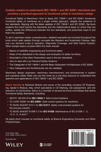 Functional Safety of Machinery: How to Apply ISO 13849-1 and IEC 62061 introduces functional safety of machinery as a single unified approach, despite the existence of two standards. Aligning with the latest updates of ISO 13849-1 and IEC 62061, the book explains the intent behind the standards and the mathematical basis on which they are written, details the differences between the two standards, and prescribes ways to put them into practice.