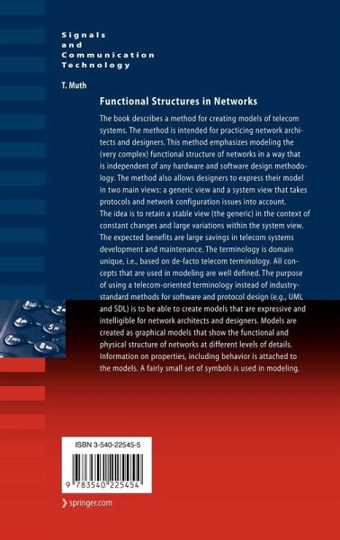 The book describes a method for creating models of telecom systems. The method is intended for practitioning network architects and designers. The method emphasizes modelling the (very complex) functional structure of networks in a way that is independent of any hardware and software design methodology. The method allows designers to express their model in two main views: a generic view and a system view that takes protocols and network configuration issues in account. The idea is to retain a stable view (the generic) in the context of constant changes and large variations within the system view. The expected benefits are large savings in telecom systems development and maintenance. The terminology is domain unique, i.e. based on de-facto telecom terminology. All concepts that are used in modelling are well defined. The purpose with using a telecom-oriented terminology instead of industry-standard methods for software and protocol design (e.g. UML and SDL) is to be able to create models that are expressive and intelligible for network architects and designers. Models are created as graphical models that show the functional and physical structure of networks on different levels of details. Information on properties, including behaviour, are attached to models. A fairly small set of symbols are used in modelling.