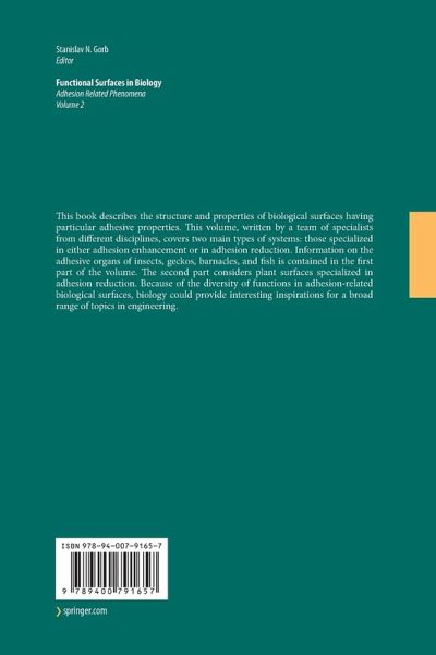 This book is devoted to the rapidly growing area of science dealing with structure and properties of biological surfaces in their relation to particular function(s). This volume, written by a team of specialists from different disciplines, covers various surface functions such as protection, defense, water transport, anti-wetting, self cleaning, light reflection and scattering, and acoustics. Because biological surfaces have a virtually endless potential of technological ideas for the development of new materials and systems, inspirations from biology could also be interesting for a broad range of topics in surface engineering. …mehr