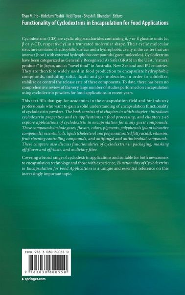 Covering a broad range of cyclodextrin applications and suitable for both newcomers to encapsulation technology and those with experience, Functionality of Cyclodextrins in Encapsulation for Food Applications is a unique and essential reference on this increasingly important topic.