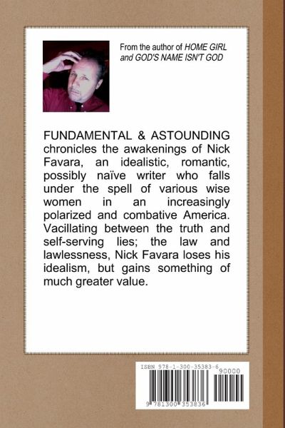 FUNDAMENTAL & ASTOUNDING chronicles the awakenings of Nick Favara, an idealistic, romantic, possibly naïve writer who falls under the spell of various wise women in an increasingly polarized and combative America. Vacillating between the truth and self-serving lies; the law and lawlessness, Nick Favara loses his idealism, but gains something of much greater value.