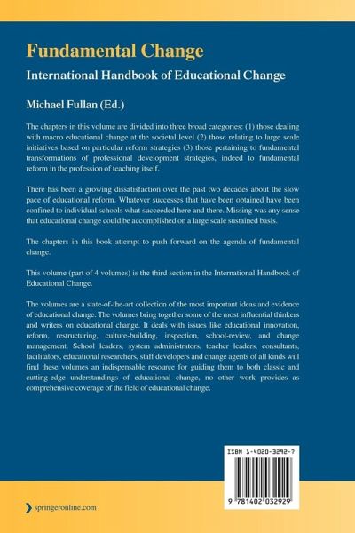 ANDY HARGREAVES Department of Teacher Education, Curriculum and Instruction Lynch School of Education, Boston College, MA, U.S.A. ANN LIEBERMAN Carnegie Foundation for the Advancement of Teaching, Stanford, U.S.A. MICHAEL FULLAN Ontario Institute for Studies Education, University of Toronto, Canada DAVID HOPKINS Department for Education and Slalls, London, U.K. This set of four volumes on brings together evidence and insights on educational change issues from leading writers and researchers in the field from across the world. Many of these writers, whose chapters have been specially written for these books, have been investigating, helping initiate and implementing educational change, for most or all of their lengthy careers. Others are working on the cutting edge of theory and practice in educational change, taking the field in new or even more challenging directions. And some are more skeptical about the literature of educational change and the assumptions on which it rests. They help us to approach projects of understanding or initiating educational change more deeply, reflectively and realistically. Educational change and reform have rarely had so much prominence within public policy, in so many different places. Educational change is ubiquitous. It figures large in Presidential and Prime Ministerial speeches. It is at or near the top of many National policy agendas. Everywhere, educational change is not only a policy priority but also major public news. Yet action to bring about educational change usually exceeds people's understanding of how to do so effectively.