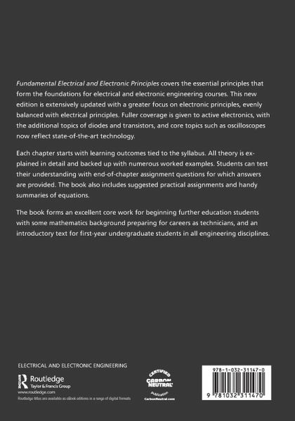 Fundamental Electrical and Electronic Principles covers the essential principles that form the foundations for electrical and electronic engineering courses. This new edition is extensively updated with a greater focus on electronic principles, evenly balanced with electrical principles. Fuller coverage is given to active electronics, with the additional topics of diodes and transistors, and core topics such as oscilloscopes now reflect state-of-the-art technology.
