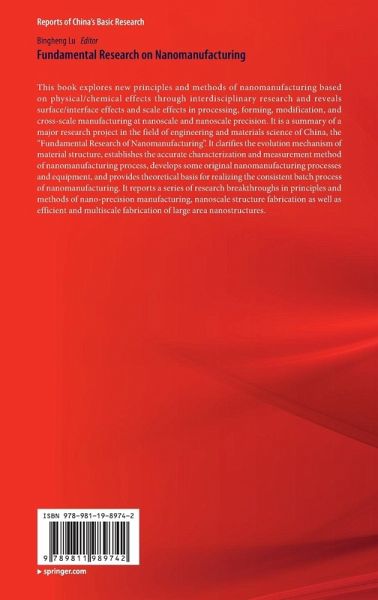 This book explores new principles and methods of nanomanufacturing based on physical/chemical effects through interdisciplinary research and reveals surface/interface effects and scale effects in processing, forming, modification, and cross-scale manufacturing at nanoscale and nanoscale precision. It is a summary of a major research project in the field of engineering and materials science of China, the "Fundamental Research of Nanomanufacturing". It clarifies the evolution mechanism of material structure, establishes the accurate characterization and measurement method of nanomanufacturing process, develops some original nanomanufacturing processes and equipment, and provides theoretical basis for realizing the consistent batch process of nanomanufacturing. It reports a series of research breakthroughs in principles and methods of nano-precision manufacturing, nanoscale structure fabrication as well as efficient and multiscale fabrication of large area nanostructures.