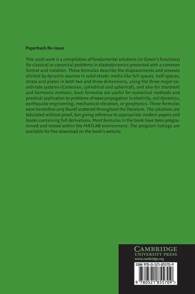 Preface Part I. Preliminaries: 1. Fundamentals 2. Dipoles Part II. Full Space Problems: 3. Two-dimensional problems in full, homogeneous spaces 4. Three-dimensional problems in full, homogeneous spaces Part III. Half-Space Problems: 5. Two-dimensional problems in homogeneous half-spaces 6. Three-dimensional problems in homogeneous half-spaces Part IV. Plates and Strata: 7. Two-dimensional problems in homogeneous plates and strata Part V. Analytical and Numerical Methods: 8. Solutions to the Helmholtz and wave equations 9. Integral transform method 10. Stiffness (impedance) matrix method Part VI. Appendices: 11. Basic properties of mathematical functions 12. Brief table of integral transforms 13. MATLAB(R) program listings.
