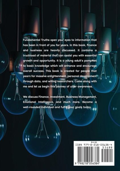 Fundamental Truths open your eyes to information that has been in front of you for years. In this book, finance and business are heavily discussed. It contains a truckload of material that can assist you with essential growth and opportunity. It is a young adult's pamphlet to basic knowledge which will enhance and encourage overall success. This book is created for people that yearn for massive enlightenment, personal development through data, and willing researchers. Come along with me and let us begin this journey of utter awareness. We discuss Finance, Investment, Business Management, Emotional Intelligence, and much more. Become a well-rounded individual and fulfill your goals today.