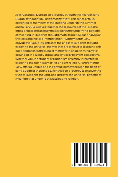 Join Alexander Duncan on a journey through the heart of early Buddhist thought in Fundamental View. This series of talks, presented to members of the Buddha Center in the summer and fall of 2013, weaves together the suttas of the Buddha into a philosophical essay that explores the underlying patterns of meaning in Buddhist thought. With its meticulous analysis of the texts and holistic interpretation, Fundamental View provides valuable insights into the origin of Buddhist thought, exploring the universal themes that are difficult to discount. This book approaches the subject matter with an open mind, yet is grounded in a lucidly critical and critically relevant perspective. Whether you're a student of Buddhism or simply interested in exploring the rich history of this ancient religion, Fundamental View offers a unique and insightful journey through the heart of early Buddhist thought. So, join Alex on a journey to uncover the truth of Buddhist thought, and discover the universal patterns of meaning that underlie this fascinating religion.