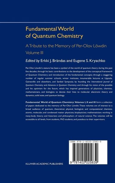 Fundamental World of Quantum Chemistry: Volumes I, II and III form a collection of papers dedicated to the memory of Per-Olov Löwdin. These volumes are of interest to a broad audience of quantum, theoretical, physical, biological, and computational chemists; atomic, molecular, and condensed matter physicists; biophysicists; mathematicians working in many-body theory; and historians and philosophers of natural science. The volumes will be accessible to all levels, from students, PhD students, and postdocs to their supervisors.