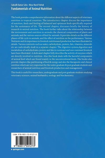 The book provides comprehensive information about the different aspects of veterinary nutrition in tropical countries.The introductory chapter discuss the importance of nutrition, feeds and feeding of balanced and optimum feeds specifically required for the sustenance of life. The second chapter, discusses briefly the history of research in animal nutrition.The book further talks about the relationship between the environment and nutrition in animals; the chemical composition of plants and animals; and the various sources of feed for animals. It provides details on the different phases of life…mehr