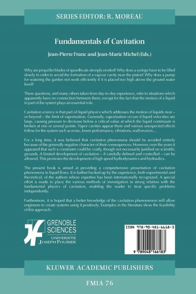 This book treats cavitation, which is a unique phenomenon in the field of hyd- dynamics, although it can occur in any hydraulic machinery such as pumps, propellers, artificial hearts, and so forth. Cavitation is generated not only in water, but also in any kind of fluid, such as liquid hydrogen. The generation of cavitation can cause severe damage in hydraulic machinery. Therefore, the prevention of cavitation is an important concern for designers of hydraulic machinery. On the contrary, there is great potential to utilize cavitation in various important applications, such as environmental protection. There have been several books published on cavitation, including one by the same authors. This book differs from those previous ones, in that it is both more physical and more theoretical. Any theoretical explanation of the cavitation phenomenon is rather difficult, but the authors have succeeded in explaining it very well, and a reader can follow the equations easily. It is an advantagein reading this book to have some understanding of the physics of cavitation. Therefore, this book is not an introductory text, but a book for more advanced study. However, this does not mean that this book is too difficult for a beginner, because it explains the cavitation phenomenon using many figures. Therefore, even a beginner on cavitation can read and can understand what cavitation is. If the student studies through this book (with patience), he or she can become an expert on the physics of cavitation.