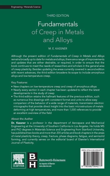 Although the present edition of Fundamentals of Creep in Metals and Alloys remains broadly up to date for metals, there are a range of improvements and updates that are either desirable, or required, in order to ensure that the book continues to meet the needs of researchers and scholars in the general area of creep plasticity. Besides updating the areas currently covered in the second edition with recent advances, the third edition will broaden its scope beyond metals and alloys to include ceramics, covalent solids, minerals and polymers, thus addressing the fundamentals of creep in all basic classes of materials.