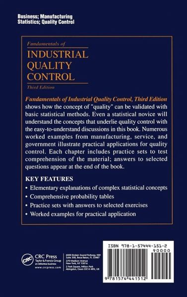 Fundamentals of Industrial Quality Control, Third Edition shows how the concept of "quality" can be validated with basic statistical methods. Even a statistical novice will understand the concepts that underlie quality control with the easy-to-understand discussions in this book. Numerous worked examples from manufacturing, service, and government illustrate practical applications for quality control. Each chapter includes practice sets for readers to test their comprehension of the material. It provides elementary explanations of complex statistical concepts and comprehensive probability tables.