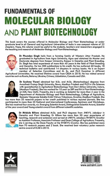 This book covers the courses offered in Molecular Biology and Plant Biotechnology at under graduate level in all General and Agricultural Universities of India in one compact volume of 22 chapters. Hope, this volume would be useful to the students, teachers and researchers engaged in the teaching and research of Molecular Biology and Plant Biotechnology.