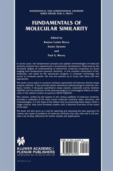 This volume written by the experts in the various subfields of molecular similarity, provides a collection of the most recent ideas, advances, and methodologies. It is the hope of the Editors that by representing these topics within a single volume, the readers will find a balanced overview of the status of the field. We also hope that the book will serve as a tool for selecting and assessing the best approach for various new types of problems of molecular similarity that may arise and it will provide a set of easy references for further studies and applications.