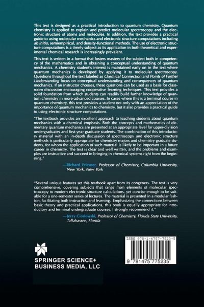 `The textbook provides an excellent approach to teaching students about quantum mechanics with a chemical emphasis. Both the concepts and mathematics of elementary quantum mechanics are presented at an appropriate level for upper division undergraduates and first year graduate students. The combination of this introductory material with an in depth discussion of spectroscopy and electronic structure methods is particularly appropriate for chemistry majors and chemistry graduate students, for whom the application of such material is likely to be important in a future career in chemistry. The text is clear and well written, and the problems and examples are instructive and succeed in bringing in chemical systems right from the beginning.'