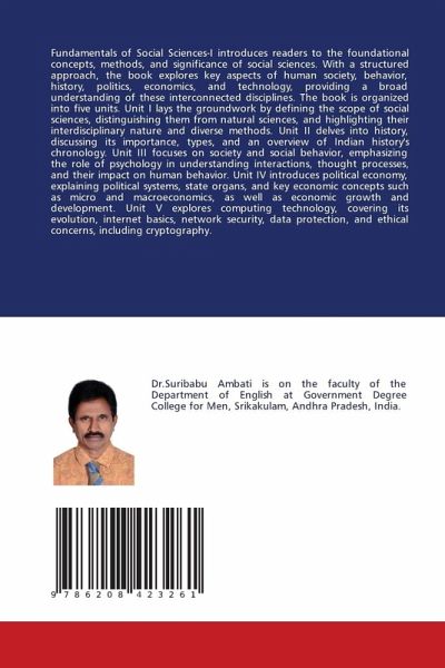 Fundamentals of Social Sciences-I introduces readers to the foundational concepts, methods, and significance of social sciences. With a structured approach, the book explores key aspects of human society, behavior, history, politics, economics, and technology, providing a broad understanding of these interconnected disciplines. The book is organized into five units. Unit I lays the groundwork by defining the scope of social sciences, distinguishing them from natural sciences, and highlighting their interdisciplinary nature and diverse methods. Unit II delves into history, discussing its importance, types, and an overview of Indian history's chronology. Unit III focuses on society and social behavior, emphasizing the role of psychology in understanding interactions, thought processes, and their impact on human behavior. Unit IV introduces political economy, explaining political systems, state organs, and key economic concepts such as micro and macroeconomics, as well as economic growth and development. Unit V explores computing technology, covering its evolution, internet basics, network security, data protection, and ethical concerns, including cryptography.