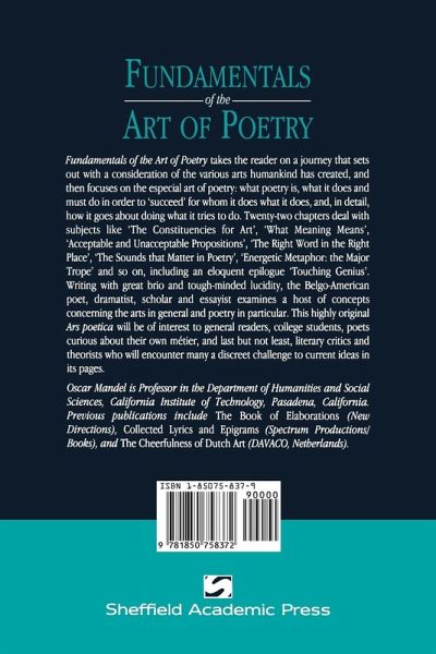 Fundamentals of the Art of Poetry takes the reader on a journey that sets out with a consideration of the various arts humankind has created, and then focuses on the special art of poetry: what poetry is, what it does and must do in order to 'succeed' for whom it does what it does, and, in detail, how it goes about doing what it tries to do. Twenty-two chapters deal with subjects like 'The Constituencies for Art', 'What Meaning Means', 'Acceptable and Unacceptable Propositions', 'The Right Word in the Right Place', 'The Sounds that Matter in Poetry', 'Energetic Metaphor: the Major Figure' and so on, including an eloquent epilogue 'Touching Genius'. Writing with great brio and tough-minded lucidity, the Belgo-American poet, dramatist, scholar and essayist examines a host of concepts concerning the arts in general and poetry in particular. This highly original Ars poetica will be of interest to general readers, college students, poets curious about their own metier, and last but not least, literary critics and theorists who will encounter many a discreet challenge to current ideas in its pages.