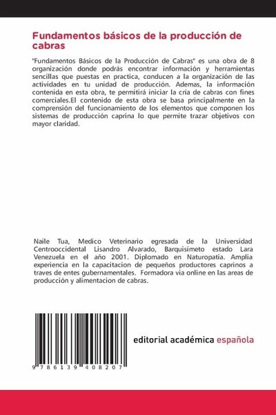 "Fundamentos Básicos de la Producción de Cabras" es una obra de 8 organización donde podrás encontrar información y herramientas sencillas que puestas en practica, conducen a la organización de las actividades en tu unidad de producción. Ademas, la información contenida en esta obra, te permitirá iniciar la cría de cabras con fines comerciales.El contenido de esta obra se basa principalmente en la comprensión del funcionamiento de los elementos que componen los sistemas de producción caprina lo que permite trazar objetivos con mayor claridad.