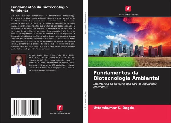 Este livro específico "Fundamentals of Environmental Biotechnology" (Fundamentos da Biotecnologia Ambiental) abrange apenas dez tópicos de importância recente, tais como a saúde ambiental, a poluição e o seu controlo, o papel dos micróbios na reciclagem de elementos no ambiente natural, os parâmetros ambientais que afectam as actividades ambientais, a biodegradação microbiana de plásticos, a biodegradação de pesticidas, a biorremediação de resíduos de corantes, a fotodegradação de plásticos e de plásticos fotodegradáveis, o lindano no ambiente e a sua degradação, a degradação microbiana do petróleo, as aplicações da biotecnologia na limpeza ambiental. São abordados pormenores importantes e intrínsecos de todos estes aspectos. Este livro será útil para estudantes de biologia, microbiologia aplicada, biotecnologia e ciências da vida a nível de licenciatura e pós-graduação, bem como para investigadores e professores de biotecnologia em geral e de biotecnologia ambiental em particular.