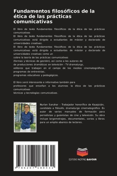 El libro de texto Fundamentos filosóficos de la ética de las prácticas comunicativas El libro de texto Fundamentos filosóficos de la ética de las prácticas comunicativas está dirigido a estudiantes de máster y doctorado de universidades creativas. El libro de texto Fundamentos filosóficos de la ética de las prácticas comunicativas está dirigido a estudiantes de máster y doctorado de universidades creativas como un sobre la teoría de las prácticas comunicativas (formas y técnicas de gestión), así como a los autores de de producciones dramáticas en televisión - TV dramaturgs, editores que trabajan en el campo de los medios cinematográficos, programas de entrevistas, programas educativos y pedagógicos. El libro será interesante e informativo también para profesores que enseñan a los alumnos la ética de las prácticas comunicativas técnicas y tecnologías comunicativas.