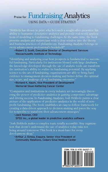 "Birkholz has shown in print why he's such a sought-after presenter: his ability to humanize descriptive analytics and provide real-world applications of modeling to fundraising challenges. At the same time, the book presents analysts and statisticians with a clear window into the theory and business practices of philanthropy. Fundraising Analytics belongs on every advancement professional's bookshelf!"