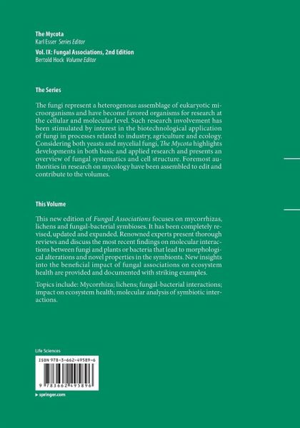 This new edition of Fungal Associations focuses on mycorrhizas, lichens and fungal-bacterial symbioses. It has been completely revised, updated and expanded. Renowned experts present thorough reviews and discuss the most recent findings on molecular interactions between fungi and plants or bacteria that lead to morphological alterations and novel properties in the symbionts. New insights into the beneficial impact of fungal associations on ecosystem health are provided and documented with striking examples.