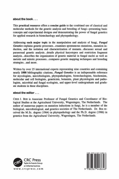 Part 1 Genetic principles: biology of fungi mutation meiotic recombination somatic recombination molecular genetic analysis the meiotic system of fungi extrachromosomal and transposable genetic elements genetic transformation and vector developments in filamentous fungi mapping and breeding strategies. Part 2 Case studies of genetic analyses: mitochondrial genetics of saccharomyces cerevisiae - the way from genetic crosses to transposable elements construction of a physical map of the candida albicans genome use of heterologous gene as marker for genetic analysis in aspergillus niger mutation in neurospora crassa - from x-rays to RIP genetic analysis and mapping of avirulence genes in magnaporte grisea genetic analysis of senescence in podospora anerina horizontal transmission in fungal populations genetic analysis in the imperfect fungus cladosporium fulvum - the development of a map-based strategy for cloning of genes involved in pathogenicity production and analysis of meiotic mutants in corpinus cinereus a case study in fungal development and genetics - schizophyllum commune genetics of phycomyces genetic analysis of the oomycetous fungus, phytophthora infestans.