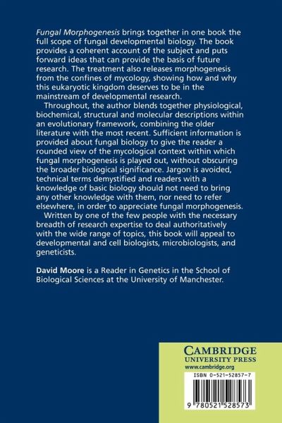 Fungal Morphogenesis brings together in one book, for the first time, the full scope of fungal developmental biology. It provides a coherent account of the subject and puts forward ideas that can provide the basis of future research. Throughout, the author blends together physiological, biochemical, structural and molecular descriptions within an evolutionary framework. Sufficient information is provided about fungal biology to give the reader a rounded view of the mycological context within which fungal morphogenesis is played out, without obscuring the broader biological significance. Readers with a background in basic biology should not need to bring any other knowledge with them, nor should it be necessary to refer elsewhere, in order to appreciate fungal morphogenesis. Written by one of the few people with the necessary breadth of research expertise to deal authoritatively with the wide range of topics, this book will appeal to developmental and cell biologists, microbiologists, and geneticists.