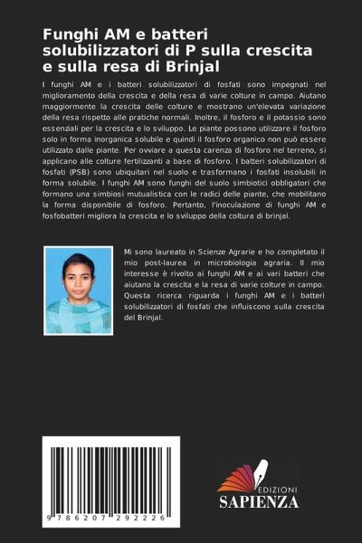 I funghi AM e i batteri solubilizzatori di fosfati sono impegnati nel miglioramento della crescita e della resa di varie colture in campo. Aiutano maggiormente la crescita delle colture e mostrano un'elevata variazione della resa rispetto alle pratiche normali. Inoltre, il fosforo e il potassio sono essenziali per la crescita e lo sviluppo. Le piante possono utilizzare il fosforo solo in forma inorganica solubile e quindi il fosforo organico non può essere utilizzato dalle piante. Per ovviare a questa carenza di fosforo nel terreno, si applicano alle colture fertilizzanti a base di fosforo. I batteri solubilizzatori di fosfati (PSB) sono ubiquitari nel suolo e trasformano i fosfati insolubili in forma solubile. I funghi AM sono funghi del suolo simbiotici obbligatori che formano una simbiosi mutualistica con le radici delle piante, che mobilitano la forma disponibile di fosforo. Pertanto, l'inoculazione di funghi AM e fosfobatteri migliora la crescita e lo sviluppo della coltura di brinjal.