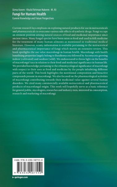 Current research lays emphasis on exploring natural products for use in nutraceuticals and pharmaceuticals to overcome various side effects of synthetic drugs. Fungi occupy an eminent position among natural sources of food and medicinal importance since ancient times. Many fungal species have been eaten as food and used in folk medicine for the treatment of many human ailments as mentioned in traditional medical literature. However, scanty information is available pertaining to the nutraceutical and pharmaceutical importance of fungi which merits an extensive review. This book spotlights the use value macrofungi in human health. Macrofungi with health benefitting properties largely belong to Basidiomycota followed by Ascomycota growing indoor (cultivated) and outdoor (wild). We endeavoured to throw light on the benefits of macrofungal taxa in relation to their food and medicinal significance in human life. We provided knowledge pertaining to the ethnomycological significance of macrofungi with respect to their uses as food and medicine by the people inhabiting different parts of the world. This book highlights the nutritional composition and bioactive compounds present in macrofungi. We also focused on the pharmacological activities of macrofungi contributing towards their medicinal value against several human disorders. We cited many commercially available nutraceutical and pharmaceutical products of macrofungal origin. This work will hopefully serve as a basic reference for general public, mycologists, researches and industry men, interested in consumption, research and marketing of macrofungi.