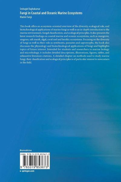 This book offers an ecosystem-oriented overview of the diversity, ecological role, and biotechnological applications of marine fungi as well as an in-depth introduction to the marine environment, fungal classification, and ecological principles. It also presents the latest research findings on coastal marine and oceanic ecosystems, such as mangrove, seagrass, salt marsh, algal, coral reef and benthic ecosystems. Focusing on the diversity of fungi as well as their role as symbionts, parasites and saprotrophs, the book also discusses the physiology and biotechnological applications of fungi and…mehr