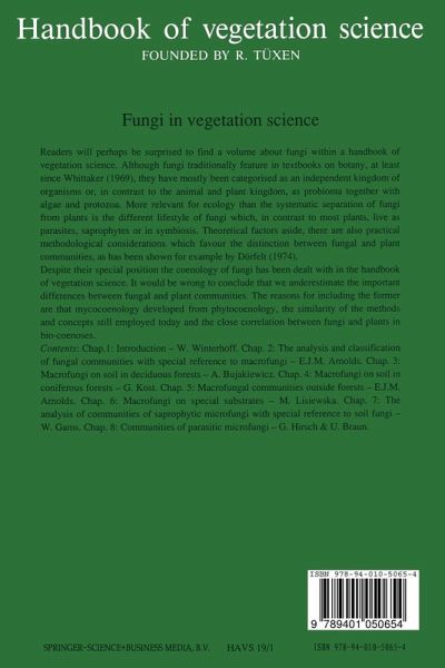Readers will perhaps be surprised to find a volume about fungi within a handbook of vegetation science. Although fungi traditionally feature in textbooks on botany, at least since Whittaker (1969), they have mostly been categorised as an independent kingdom of organisms or, in contrast to the animal and plant kingdom, as probionta together with algae and protozoa. More relevant for ecology than the systematic separation of fungi from plants is the different lifestyle of fungi which, in contrast to most plants, live as parasites, saprophytes or in symbiosis. Theoretical factors aside, there are also practical methodological considerations which favour the distinction between fungal and plant communities, as has been shown for example by Dörfelt (1974).