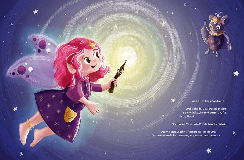 Wenn sich die Dunkelheit über den Himmel spannt, fliegt Funkel die kleine Dunkelfee in den Wald. Dort zaubert sie der heiseren Schleiereule ihre Stimme wieder gesund und hilft den kleinen Füchsen dabei, einzuschlafen. Nur ihre eigene Schüchternheit kann sich Funkel nicht wegzaubern, und so hofft sie, von niemandem entdeckt zu werden. Als die Waldtiere sie zu ihrem Wintersonnenfest einladen wollen, ist Funkel unsicher. Traut sie sich, dort zu erscheinen?