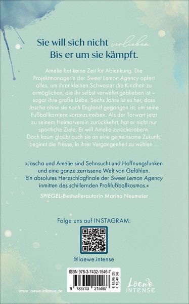 »Joscha und Amelie sind Sehnsucht und Hoffnungsfunken und eine ganze zerrissene Welt von Gefühlen. Ein absolutes Herzschlagfinale der Sweet Lemon Agency inmitten des schillernden Profifußballkosmos.«