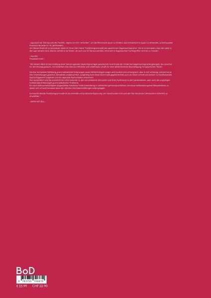 Japanisch sei "Die Sprache des Teufels", eigens von ihm "erfunden", um die Missionare daran zu hindern, das Christentum in Japan zu verkünden, so behauptete Francisco de Javier im 16. Jahrhundert.Um diesen Eindruck gar nicht erst aufkommen zu lassen, biete ich Ihnen hier meine "Funktionsgrammatik der japanischen Gegenwartssprache". Sie ist so konzipiert, dass der Leser in die Lage versetzt wird, ebenso schnell in sie hinein- als auch aus ihr herauszufinden, ohne sich in linguistischen Fachbegriffen verirren zu müssen.