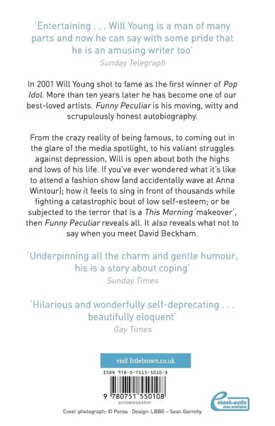 'Hilarious and wonderfully self-deprecating ... beautifully eloquent' Gay Times In 2001 Will Young shot to fame as the first winner of Pop Idol. More than ten years later he has become one of our best-loved artists. Funny Peculiar is his moving, witty and scrupulously honest autobiography. From the crazy reality of being famous, to coming out in the glare of the media spotlight, to his valiant struggles against depression, Will is open about both the highs and lows of his life. If you've ever wondered what it's like to attend a fashion show (and accidentally wave at Anna Wintour); how it feels to sing in front of thousands while fighting a catastrophic bout of low self-esteem; or be subjected to the terror that is a This Morning 'makeover', then Funny Peculiar reveals all. It also reveals what not to say when you meet David Beckham. 'Underpinning all the charm and gentle humour, his is a story about coping' Sunday Times 'Entertaining . . . Will Young is a man of many parts and now he can say with some pride that he is an amusing writer, too' Sunday Telegraph Books of the Year
