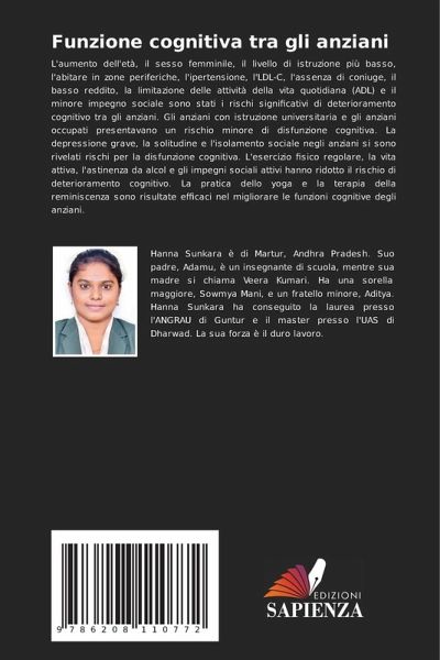L'aumento dell'età, il sesso femminile, il livello di istruzione più basso, l'abitare in zone periferiche, l'ipertensione, l'LDL-C, l'assenza di coniuge, il basso reddito, la limitazione delle attività della vita quotidiana (ADL) e il minore impegno sociale sono stati i rischi significativi di deterioramento cognitivo tra gli anziani. Gli anziani con istruzione universitaria e gli anziani occupati presentavano un rischio minore di disfunzione cognitiva. La depressione grave, la solitudine e l'isolamento sociale negli anziani si sono rivelati rischi per la disfunzione cognitiva. L'esercizio fisico regolare, la vita attiva, l'astinenza da alcol e gli impegni sociali attivi hanno ridotto il rischio di deterioramento cognitivo. La pratica dello yoga e la terapia della reminiscenza sono risultate efficaci nel migliorare le funzioni cognitive degli anziani.