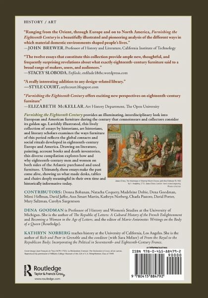 Furnishing the Eighteenth Century provides an illuminating, interdisciplinary look into European and American furniture during the century that connoisseurs and collectors consider its golden age. Lavishly illustrated, this lively collection of essays by historians, art historians, and literary scholars examines the ways furniture of this period reflects the global contacts and social rituals developed in eighteenth-century Europe and America. Drawing on literature, painting, account books and death inventories, this diverse compilation explores how and why eighteenth-century men and women on both sides of the Atlantic purchased and used furniture. Ultimately, these essays make the past come alive, showing us what made desks, tables and chairs deeply meaningful in their own time and historically informative today. Contributors: Donna Bohanan, Natacha Coquery, Madeleine Dobie, Dena Goodman, Mimi Hellman, David Jaffee, Ann Smart Martin, Kathryn Norberg, Chaela Pastore, David Porter, Mary Salzman, Carolyn Sargentson