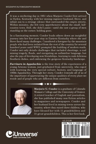 Thrust from a university campus into the coal mining country of Eastern Kentucky in the 1950s, the young author faced many challenges. She and her mining engineer husband found themselves foreigners when they arrived; the mountain people, who had been isolated from the rest of the country for several hundred years, were suspicious of strangers. It wasn't until World War II, only ten years earlier, that the U.S. needed Kentucky coal for the war effort and built roads into the area, bringing electricity and other modern ideas. During their four year stay, the couple experienced shootings, a coal mining tragedy, floods and unfamiliar language, but they also discovered the joys of new friends, caring people, delicious Southern cooking and gorgeous scenery. The author and her husband learned to appreciate the unique qualities of Appalachia and its residents as they grew in understanding of the mountain ways.
